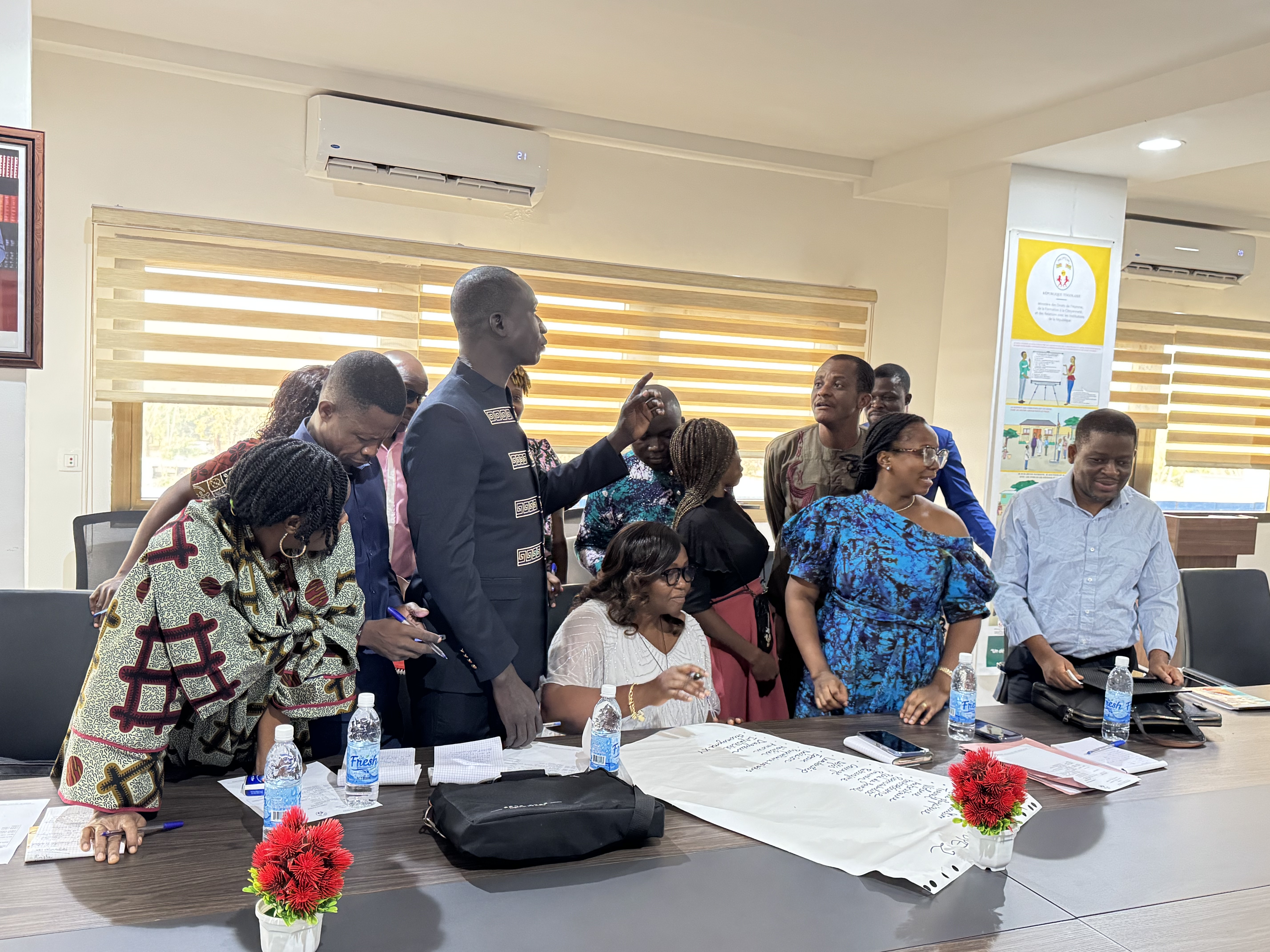 Pour permettre une meilleure appropriation du sujet par les participants, deux modules ont été dispensés. Le premier, consacré à l’introduction au genre et aux notions connexes, a reposé sur des travaux de groupe permettant d’explorer les perceptions liées aux rôles sociaux, au sexe et au genre. Le second module a porté sur l’intégration de l’approche genre dans les actions du ministère et a rappelé les obligations juridiques et institutionnelles issues des textes nationaux et des conventions internationales. Lesdits modules, présentés par Madame HOUNYO Afi, membre de la Cellule Focale Genre, cheffe division à la direction de la législation et de la protection des droits de l’Homme.