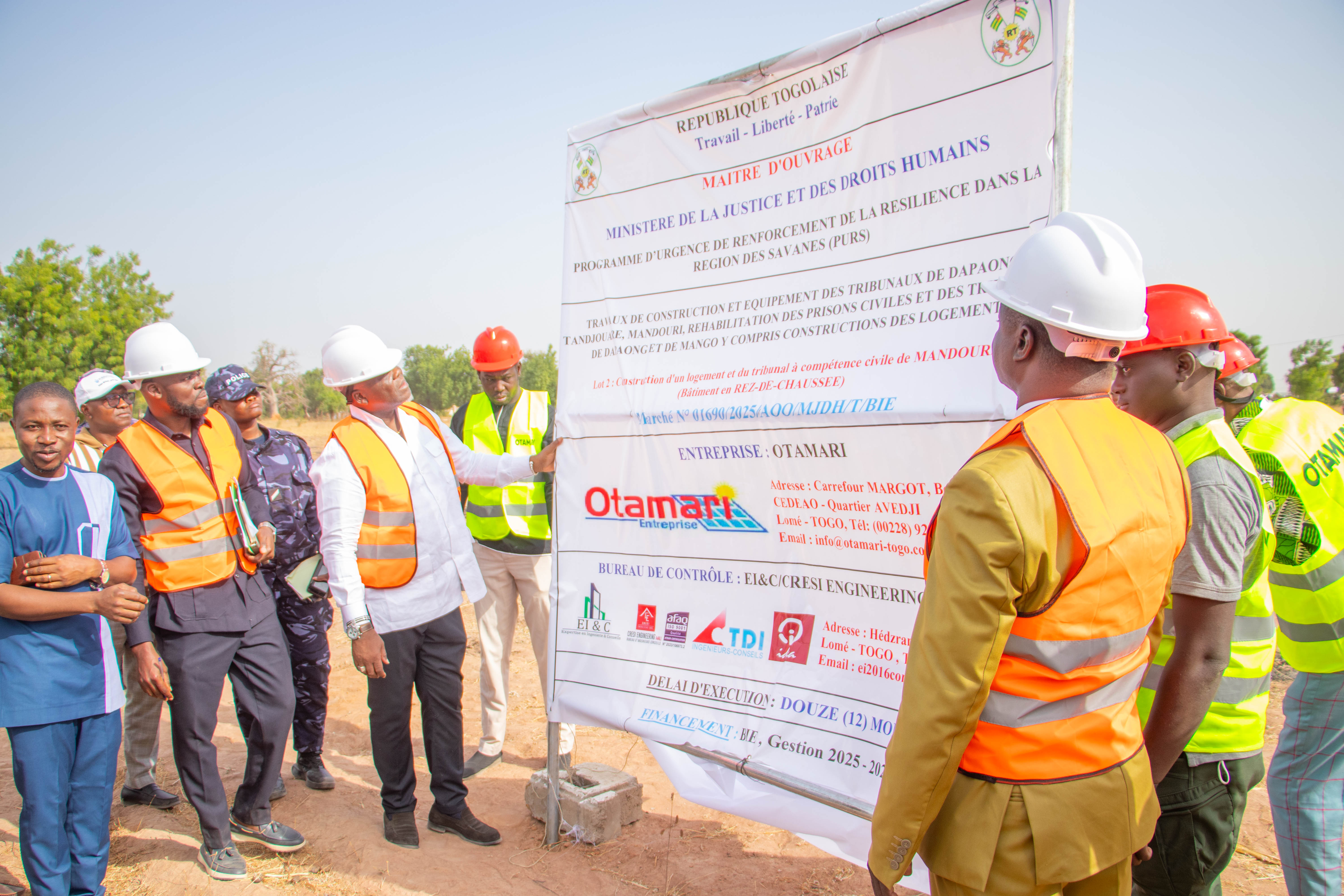 Dans cette dynamique globale, les préfectures de Tandjouaré et de l’Oti ne sauraient être en reste. Dans ces deux localités, c’est le directeur de cabinet du ministère, M. Kadanga Tchalim, qui a présidé la remise des sites aux entreprises. À Tandjouaré, il est prévu la construction, dans un délai de douze mois, d’un tribunal d’instance à compétence civile, pour un montant de 380 047 739 francs CFA, confiée à l’entreprise CETA SA, sous le contrôle du groupement CEST–BECEA–PI Conseils.