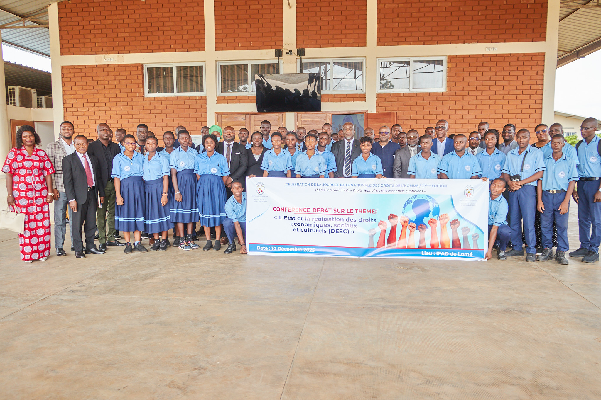 Placée sous le thème international « Droits humains : nos essentiels quotidiens », cette journée de commémoration organisée par le Ministère de la Justice et des Droits Humains a réuni divers acteurs, dont le personnel de l’Agence Éducation-Développement (AED), les membres de l’administration de l’IFAD, les enseignants-formateurs. Aux côtés du Ministre Me Pacôme ADJOUROUVI, venu lancer l’activité se trouvait M. Dammipi Noupokou, Directeur Général de l’AED, promoteur des IFAD. Plus de 460 apprenants ont bénéficié de cette conférence, pensée comme un espace d’échange et de sensibilisation sur les droits économiques, sociaux et culturels.